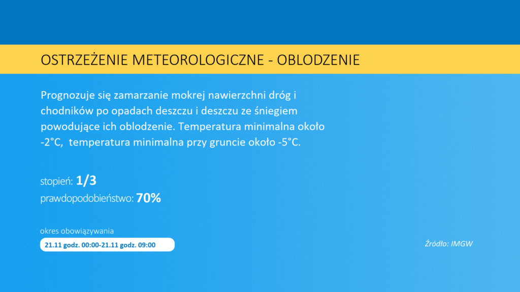Instytut Meteorologii i Gospodarki Wodnej wydał ostrzeżenie przed niebezpiecznymi warunkami na drogach.