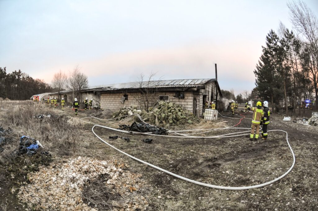 Duży pożar w Lipówce, dym było widać nawet ze Śremu. Spłonęła boczniakarnia