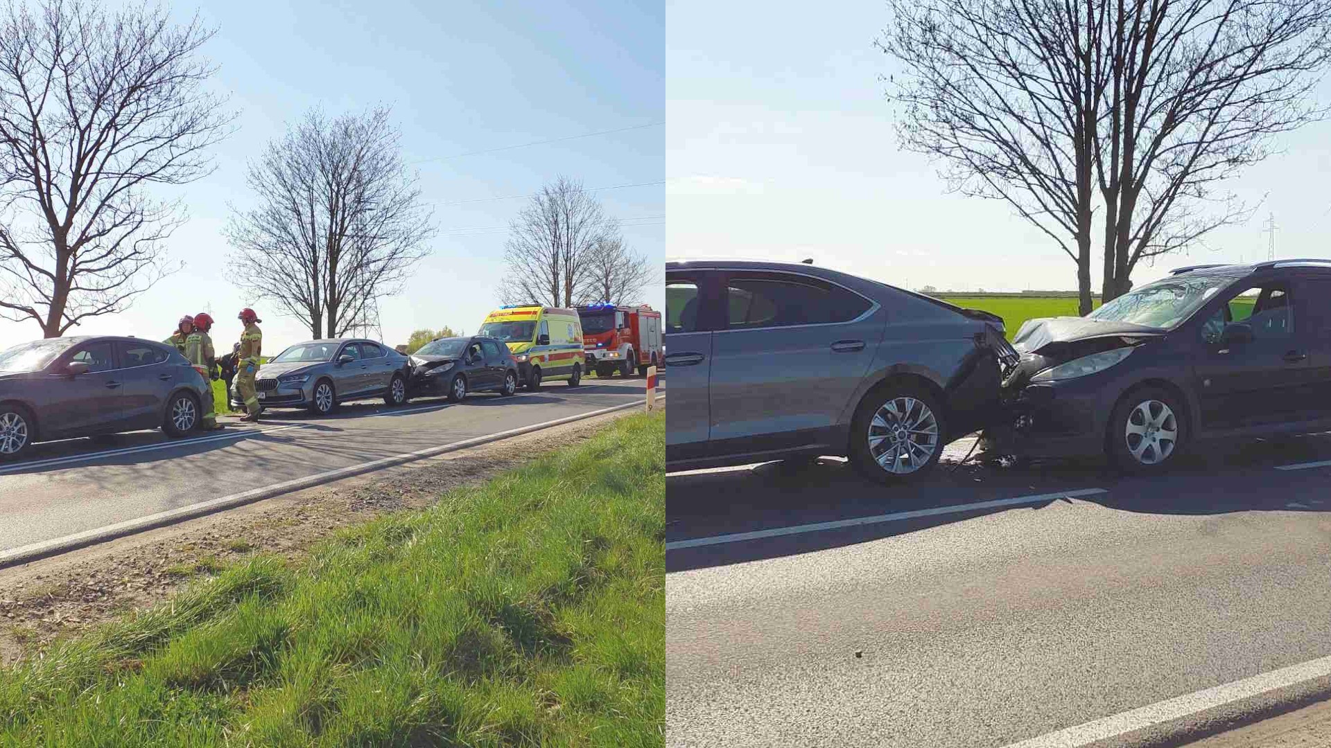 Początkowo droga była zablokowana, obecnie ruch na DW436 jest kierowany wahadłowo. Na miejscu znajduje się Straż Pożarna, Zespół Ratownictwa Medycznego i Policja. Zgłoszenie o kolizji wpłynęło z automatycznego systemu eCall.